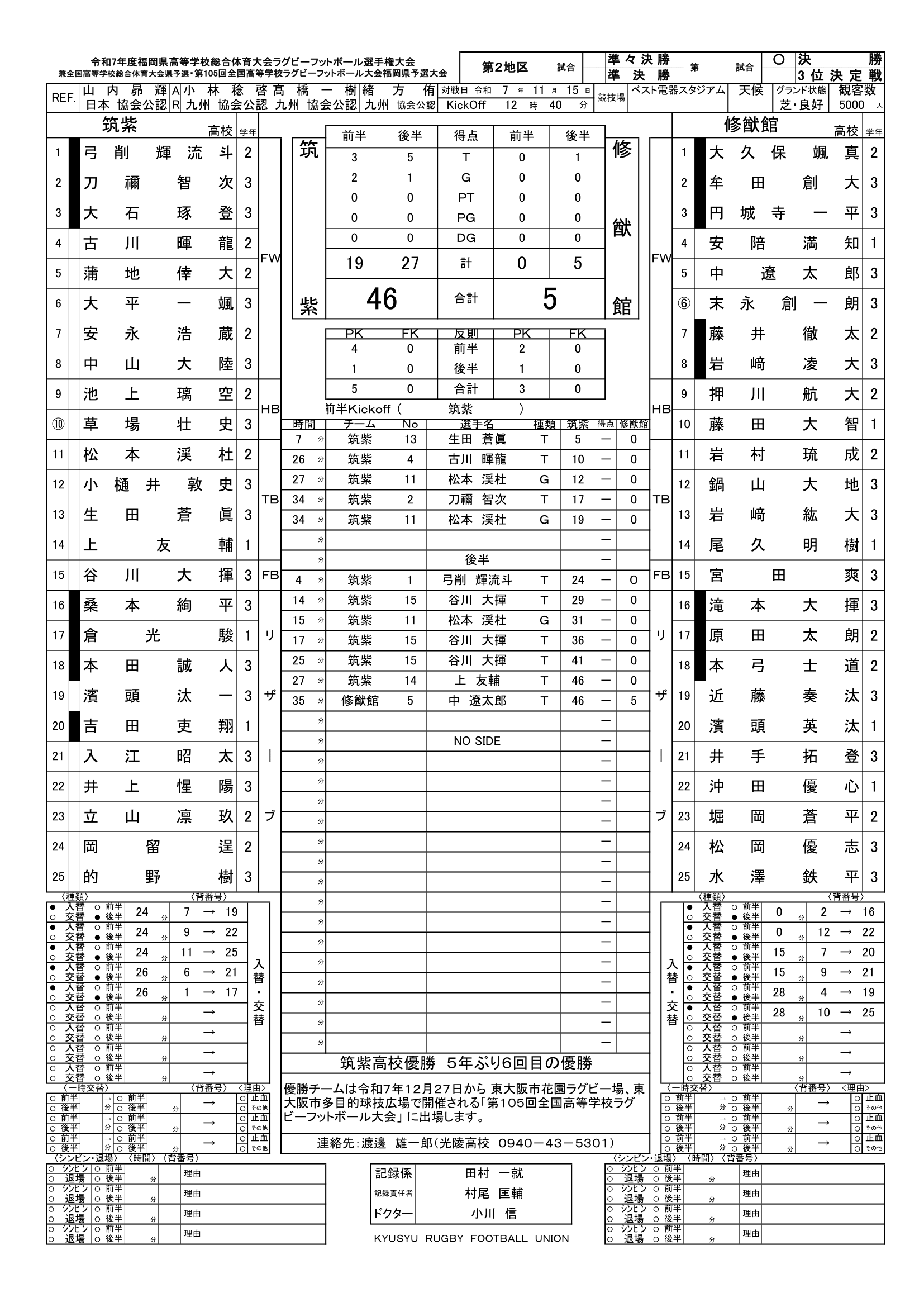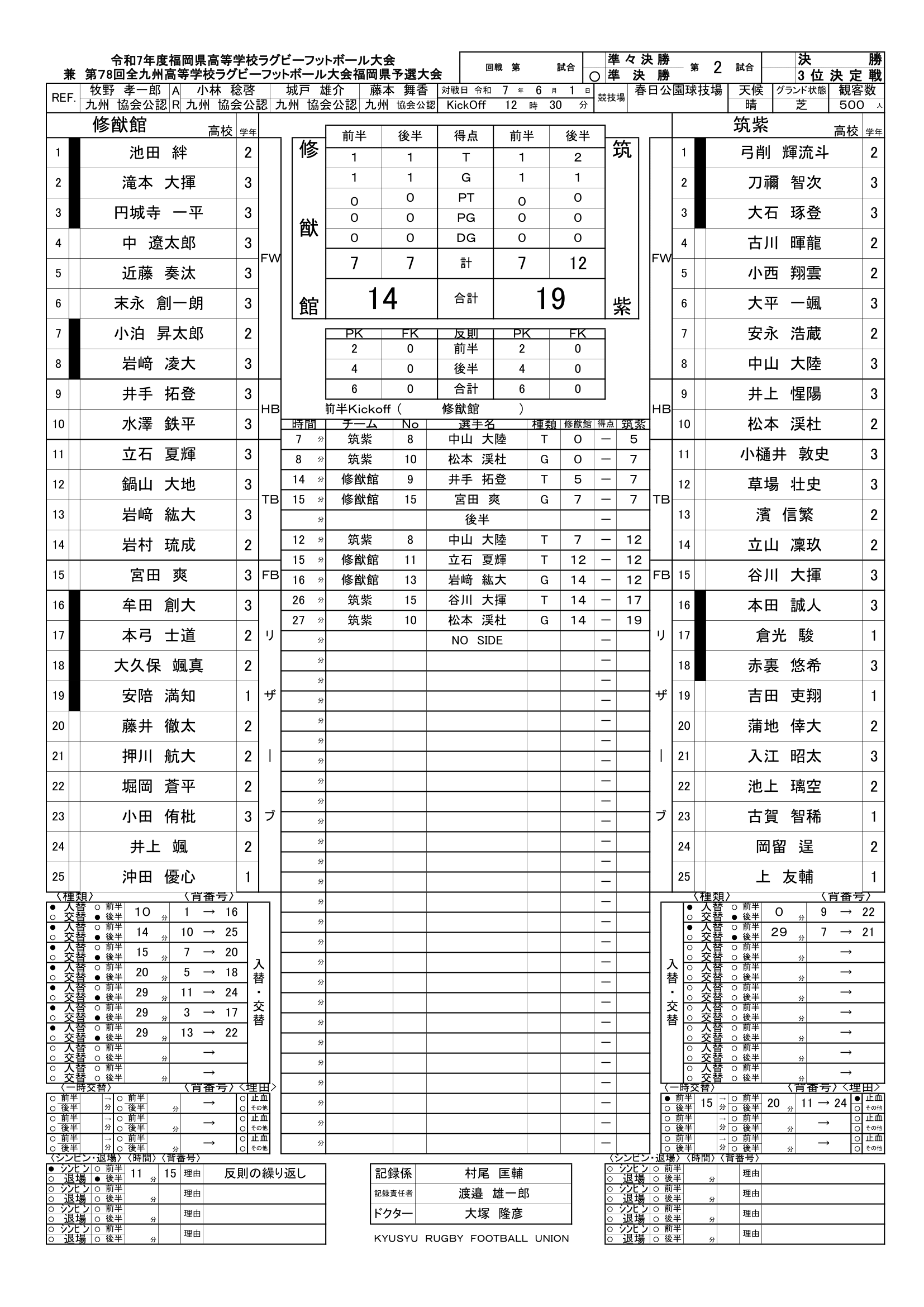 九州大会県予選  準決勝(14-19 筑紫高に敗退 <クゼン不動産スタジアム>)