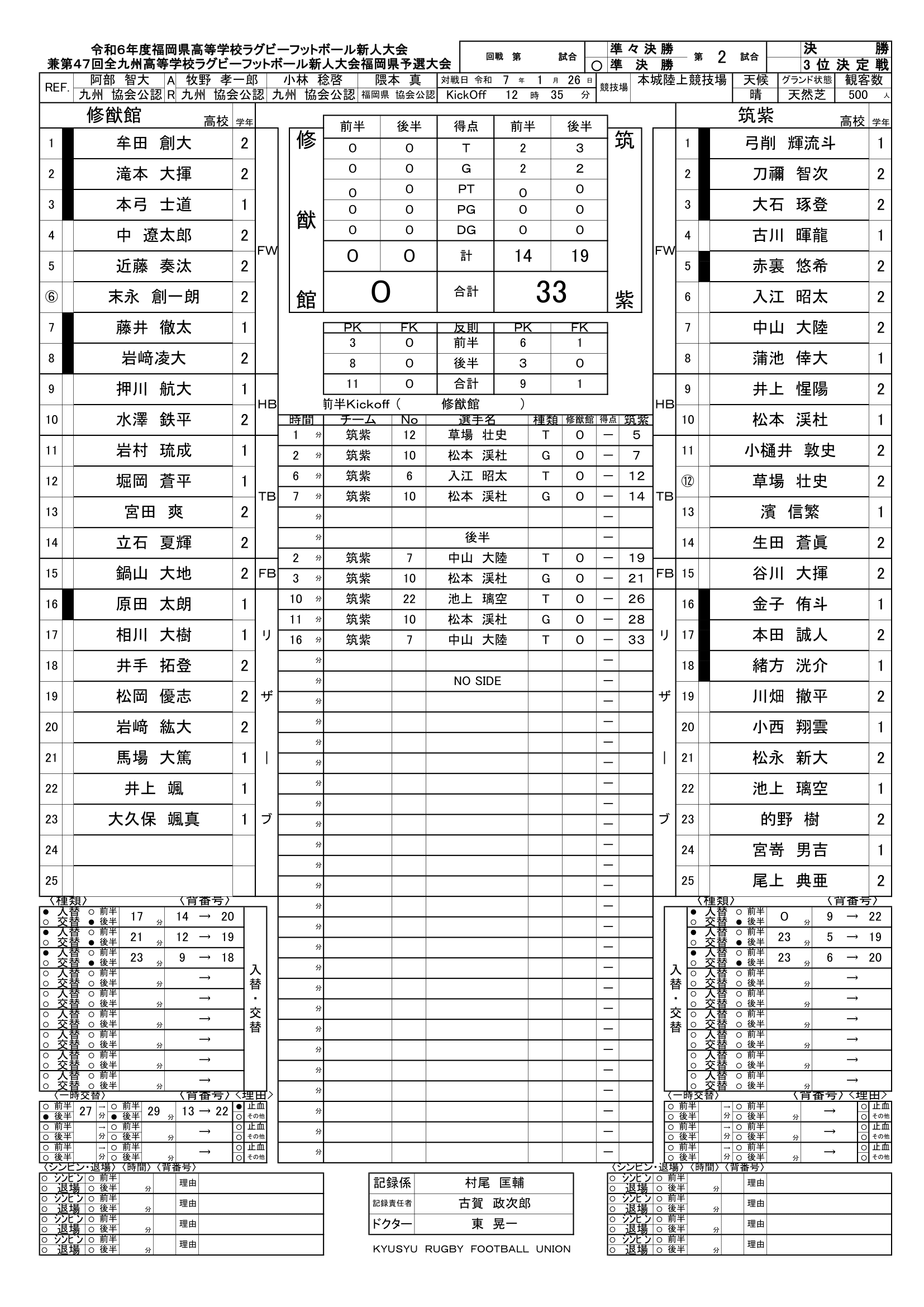 3位決定戦(19-21 福岡工業高に敗退<オクゼン不動産スタジアム>)4位